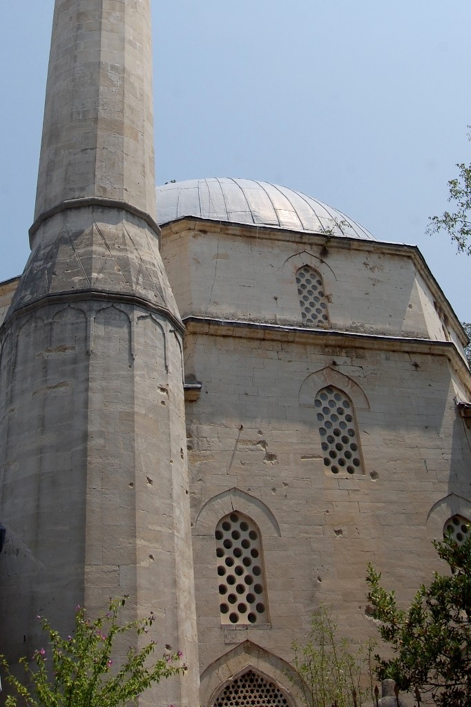 We rested in the shade of a tree next to another Mosque, photographs outside show how it looked before and straight after the war, even now after being repaired, you can still see the bullet and shrapnel wounds.