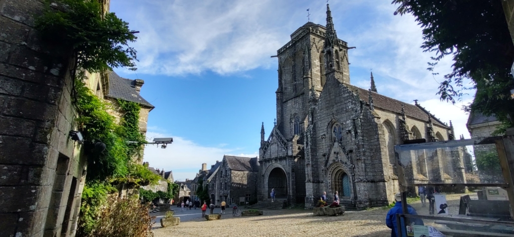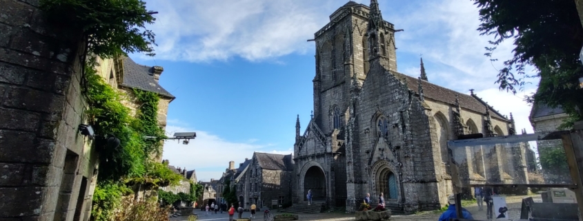 Locronan is one of around 160 villages in France that have earned themselves the title of Les Plus Beaux Villages de France, ‘most beautiful villages in France’, in fact The Guardian listed it as number one in their list. We’ve visited a few of these villages over time, and even with grey skies over grey granite buildings the village earned its title. Vehicles were banned from the centre between 11am and 7pm to allow us tourists to have uninterrupted views of the stone houses. Of course, we were there before 11am, so while we had the odd car in our photos, we had many fewer people than later in the day.