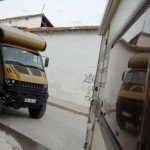Dave the motorhome is shivering in the rain, in a safe harbour for another night at the blue flag marina, Sidi Bou Said (N36.86801 E10.35211). With the exception of a few cliff top wild dogs howling at the moon, the place here is calm, as I guess it would be within a stone’s throw of the Presidential Palace, a collection of white-washed buildings set amidst palms and other tropical-looking greenery.