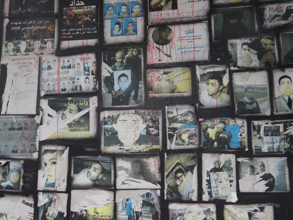 Reaching the Bardo tram stop we got off and looked around for the famous whitewashed museum. A building right next to the tram stop confused us, locked, overgrown and sided by an almighty pile of stinking garbage being picked over by a couple of blokes. Is this is? Has Tunis folded in on itself to the point its cultural heritage has had to be mothballed? It seemed a reasonable assumption, especially when we saw this load of posters on the wall nearby.