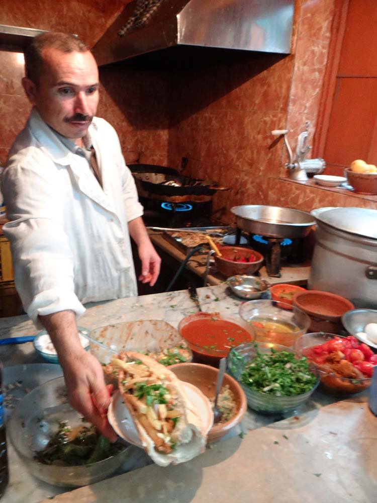 With a menu in Arabic, we spotted a guy having an egg and chip cob (with a few other weird bits and bobs) and asked for a couple the same. 1.4TD each, about 65p, and they were delicious.