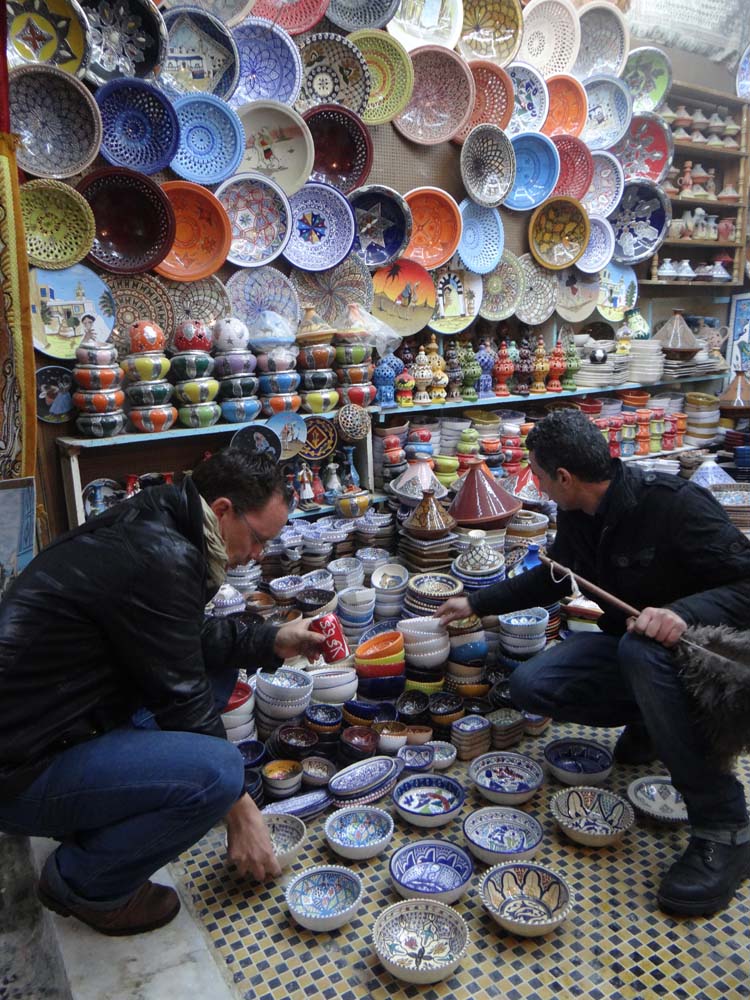 The medina was pretty easy going. The usual cat calls to tempt us passing punters to look into one of any identical shops, but no grabbing of arms, hissing, whistling at us, shouting that we were rude, all that bad stuff was missing and we liked it. Ju spotted a chap nearly go his length in the fishmonger’s shed, warning me to look out for the fish heads and the like waiting to do a Tunisian banana-skin trick on me. After a bit to eat: