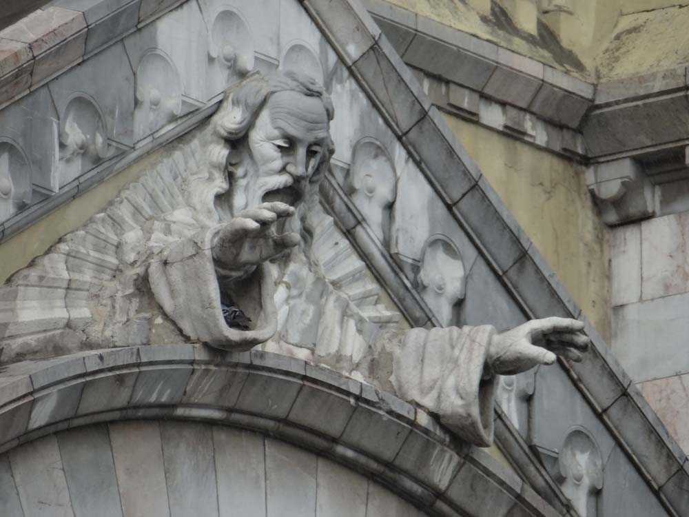 Unlikely-looking Jesus-God figure leaping forth from a, ah, church on Ave Bourguiba. What the Blazes?