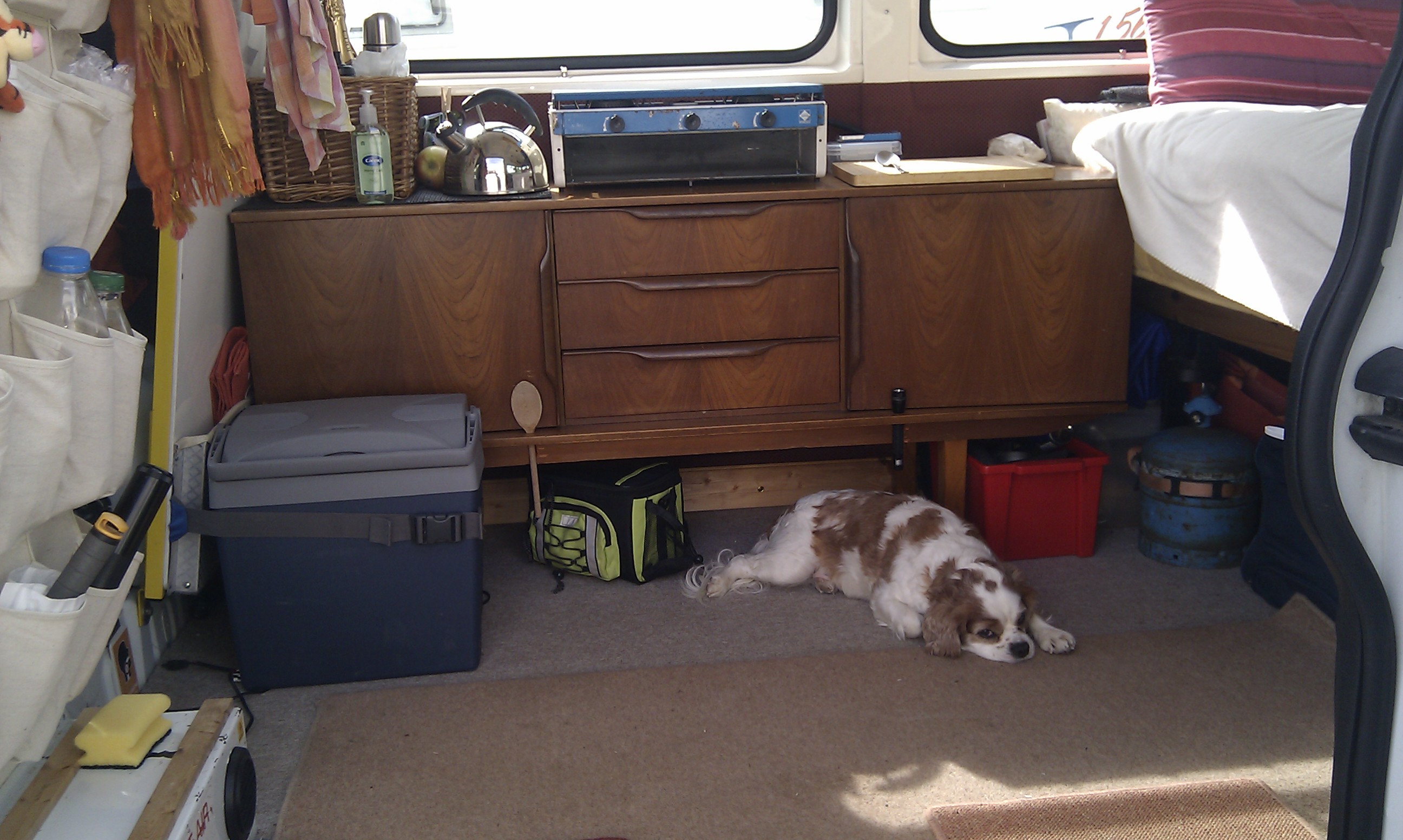 - A freecycle sideboard adorns the Ambulance, having been popped in there the week before the trip.