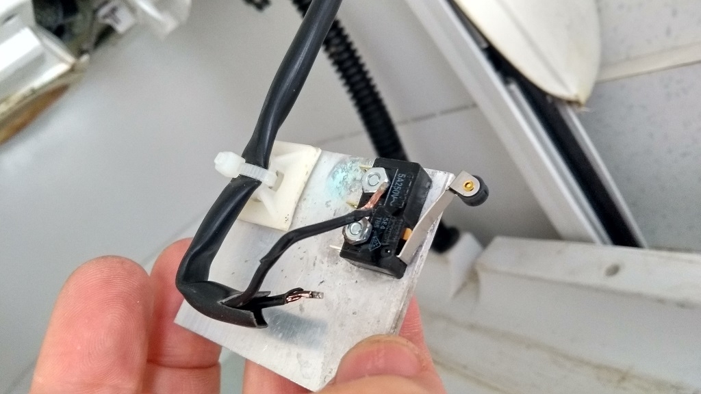 A bit of investigation with our multi-meter revealed the micro-switch was faulty. This is attached to the inside of the toilet housing and switches the fan on when the blade is opened (the above video shows this). Our micro-switch had gotten wet more than once due to a faulty flush mechanism on our van, and was showing signs of corrosion.