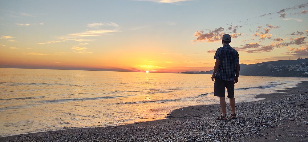 Julie and I flew home on 16 November. The day before Mark and Cath, who have a beautiful fifth-wheeler rig, invited us and Rod and Wendy to a socially-distanced sunny meal on their pitch. It was a lovely gesture, a great opportunity to learn a little about them and to step away from death for a while. After an evening walk into Nerja for a last delicious ice cream and a chance to watch the sun set over the sea, we moved the van to the storage location on the site, turned the fridge off and had a fitful night’s sleep waiting for the alarm to go off. Giving ourselves 45 minute’s prep time in the morning was, we discovered, only just enough as we rushed about getting dressed, cleaning puddles in the fridge, emptying the loo, draining the van down, eating breakfast and washing up. We locked the van in the twilight at 7:25am, not knowing when we’ll see it again.