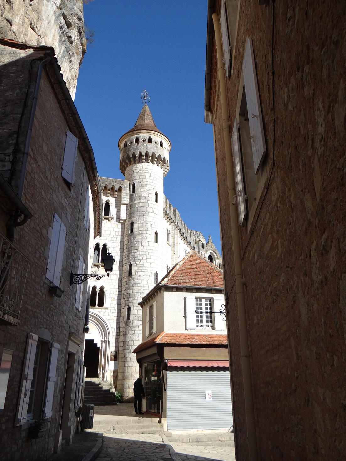 Back to where we are: Rocamador. Between the two of us we’ve come to describe our feelings of a place in terms of the other places we’ve been. A little Mont St Michel-ish maybe? Yeah, perhaps a little Monemasia thrown in, with a tiny bit of Montepluciano? It’s easier than actually trying to relate what we can see.
