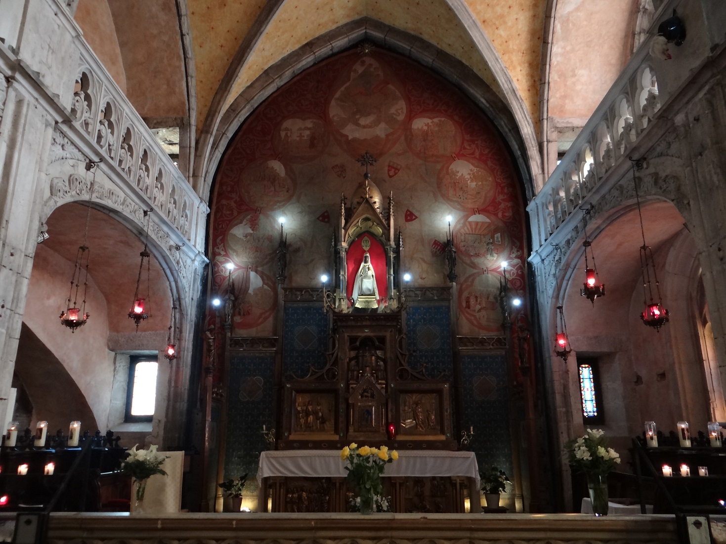 Rocamador has an extra-ordinary look about it, a chateau landed with a thump atop a cliff falling away into a tree-lined gorge cut by what appears to be a mere splash of a stream. Down below the chateau churches topple upwards towards it, and below them a single road lined with stone buildings. This was once at the epicentre of one of Europe’s great pilgrim routes, back when people travelled out of the desire to gain favour from their god rather than for the sheer fun and celebration of life which drives folks along roads and through the air these days. Having said that, all of us tiptoe and whisper our way around the dark insides of the tiny churches, and I’m fairly sure I’m not the only atheist here along for the ride.