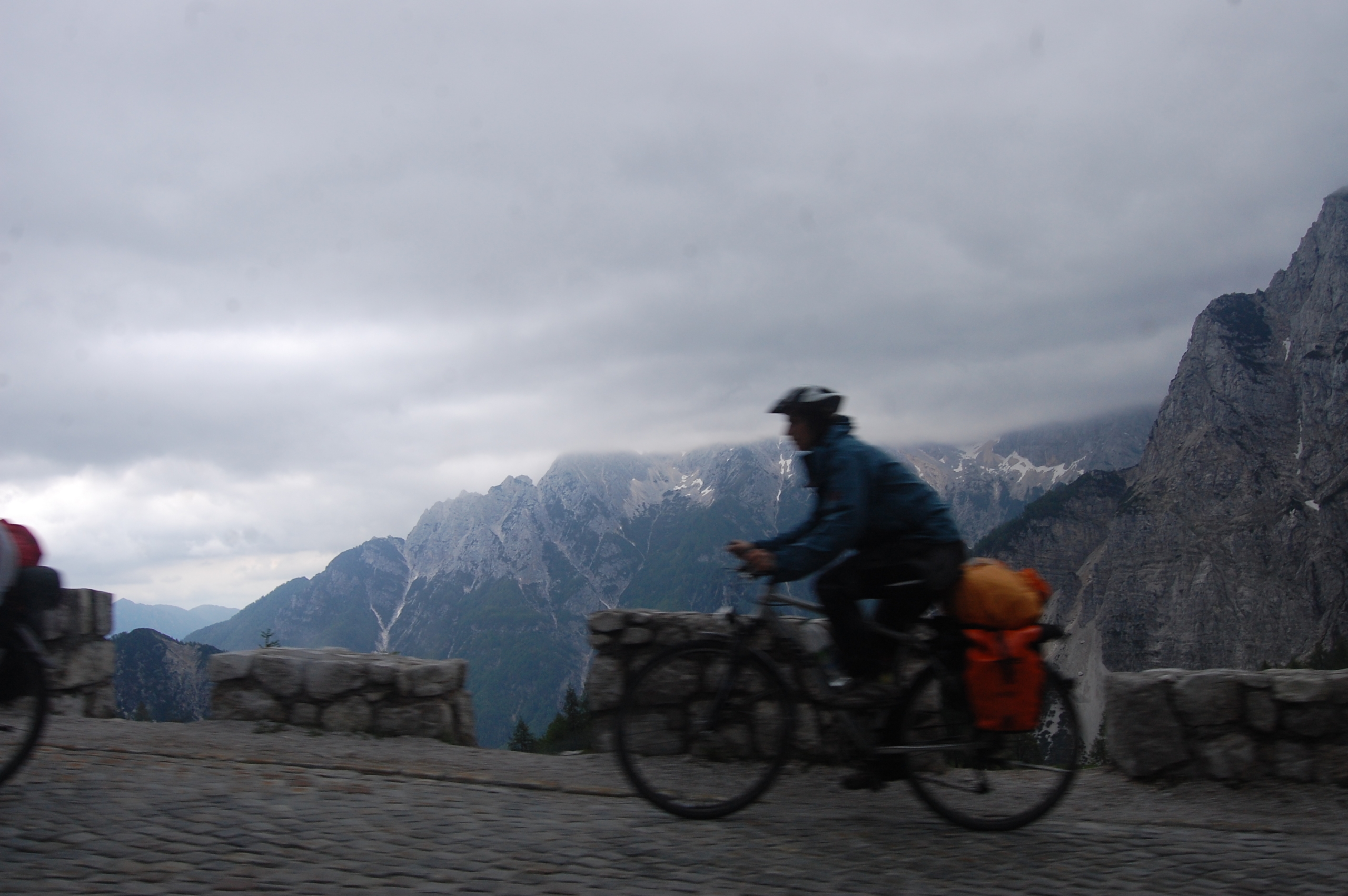 We were up quite early for us, but Jon and Anne were already up, showered and breakfasted – looks like the seven months we’ve been on the road has altered our sleep patterns and an early get up is anything before 8.30am! After a quick Dave tidy up and a bite to eat we set off in Jon’s car to drive the Vrsic pass, the highest pass in Slovenia.