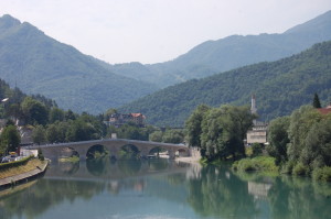 Ending up in last night’s camp site turned out to be a real roller coaster. Sacha and his family have been Mostar residents for well, ever, and he was more than happy to talk politics and war. He came across as a reasonable man, albeit a shifty character; telling us when ‘his guests’ ask why there was a war, his answer is ‘I don’t know’. His longer version of this answer is that the Croats (Roman Catholic), Bosniaks (Muslim) and Serbs (Orthodox) have always got along nicely here. Marshal Tito, he tells us, was a great man, and kept the later wartime national leaders and protagonists in check by imprisoning them. With Tito dead, these politicians were the ones to cause war, not the people themselves. He was angry that fighters travelled hundreds of miles to his country, from Croatia and Serbia, just to make war. He held a low opinion of the US, asking us ‘if you had a problem in your house, would you be happy if a policeman came in to fix it’? It seemed to me that US intervention (diplomacy and military force) halted a devastating, destructive war. Being on Sacha’s turf, with his big dog sat next to me, I made no point.