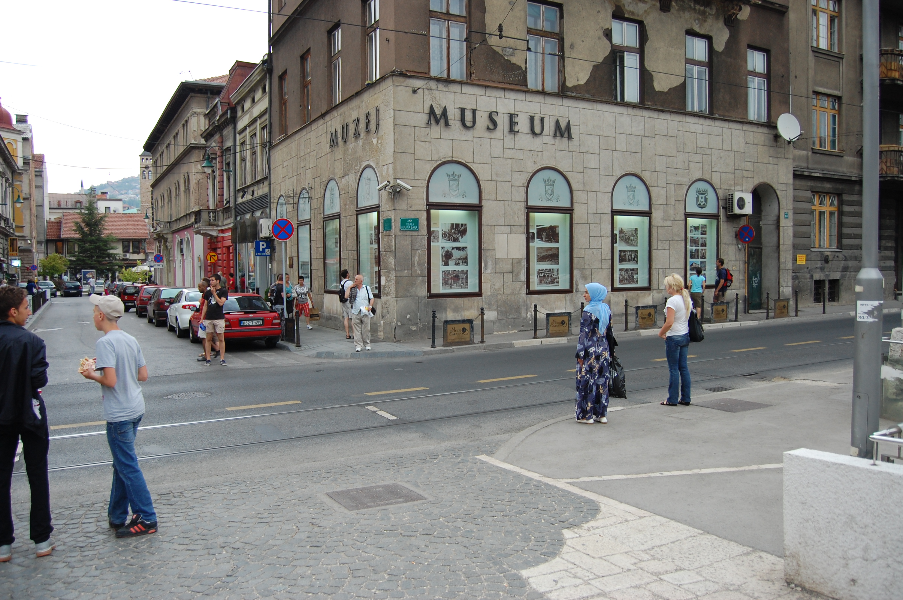 Stepping off the tram, a minute’s walk find us in the spot where Archduke Franz Ferdinand was assassinated, unexpectedly kicking off a millions-killer war, is marked by a stone plaque and a museum. The young man who killed Franz and his wife, shot them as their driver reversed from a wrong turn. His sepia portrait stares defiantly out from the museum window, a dull sheen of fear in his eyes.