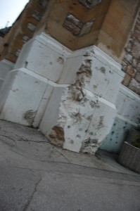 - Some bits of stone are harder to repair than others we guess. This is the foot of a Sarajevo church.