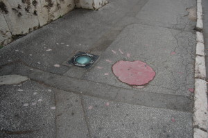 - A ‘Sarajevo Rose’; red marks the spot where a mortar dropped from above, one of hundreds each day.