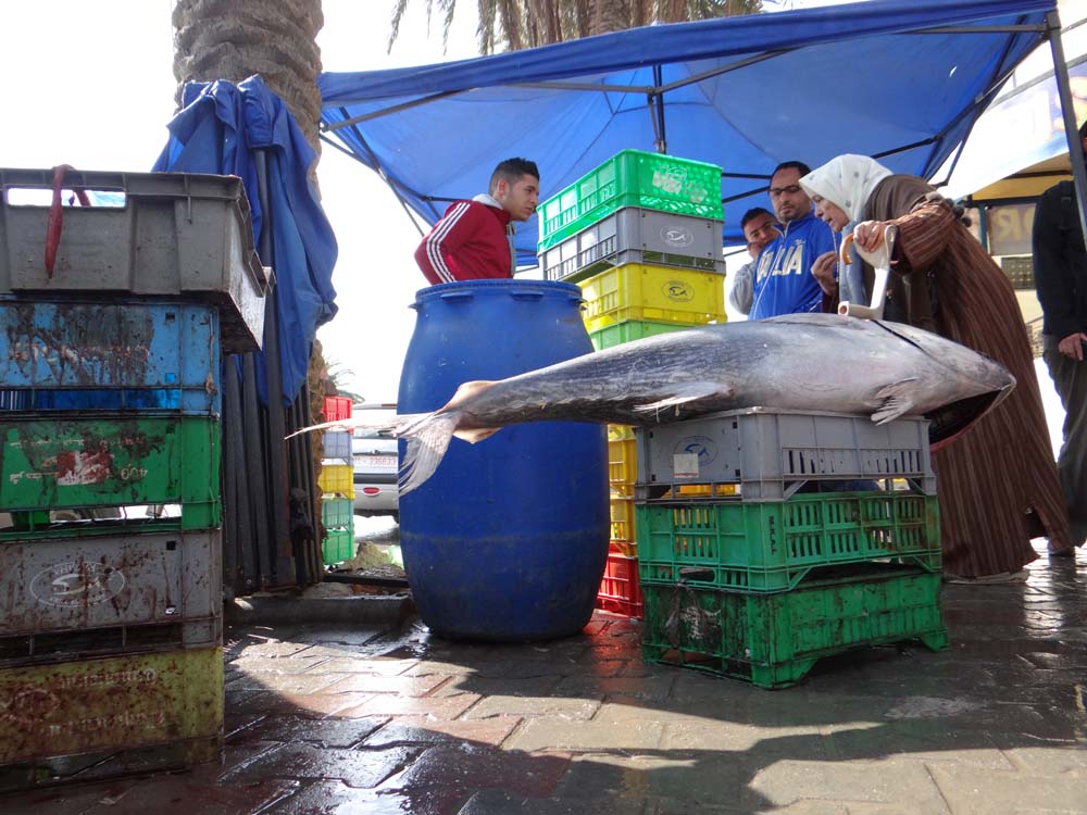Back into the medina Ju reneged on her decision to buy quality sunglasses, spotting a rare sign: 3500 along a small stack of knock-off glasses, about €1.75. Picking over a couple of pairs, the seller grabbed a mirror from another punter to show her how she looked. Just before sealing the deal we recalled the advice from the Rough Guide: ask the price here or you’ll be stung. Sure enough, the seller pointed at the 3.5TD sign and then held up a pair of awful pink-rimmed things Elton John would faint at. Those you want are ten. It took about 30 seconds before the price of ours was down to 3.5TD, we just weren’t in the mood for it, and when he wanted to not give change from 4TD, mumbling something about him needing cigarettes I laughed cynically, and held my hand out until 0.5TD made its way into my own grabbing palm, coming from a reluctant neighbouring seller.