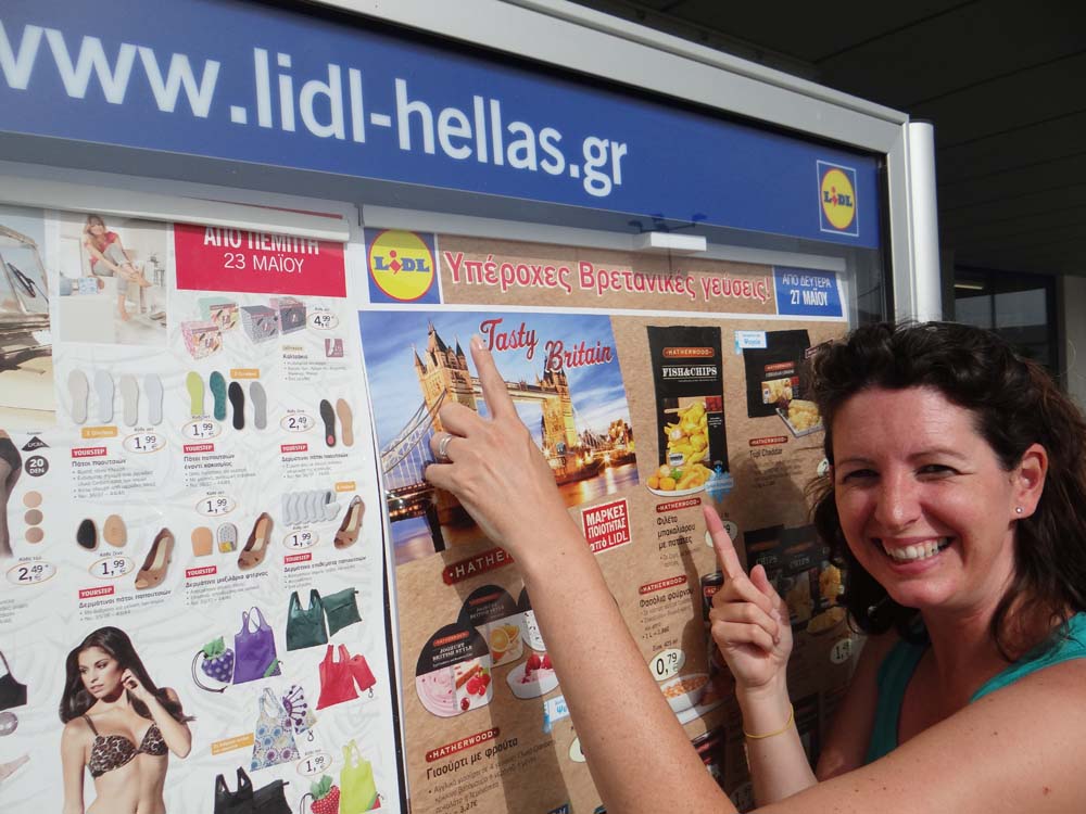 Baked stuffed tomato and pepper, fried aubergine, crab salad, chips and moussaka, oh, and a half litre of house red. Ooh yeah. The menu outstripped the chef’s ability to cook it though. The meaty bit of the crab salad consisted of ‘crab sticks’ (which everyone knows have never seem a crab), the aubergine was dripping with olive oil to the point it was more like fried olive oil, and the rice in the stuffing wasn’t cooked, cracking in our teeth like birdseed. The view out over the sea easily balanced off the, ah, crap food though, and it came to a whole €23. As no till receipt arrived, I figured the unpaid VAT would do as a tip and we drifted off back to Dave.