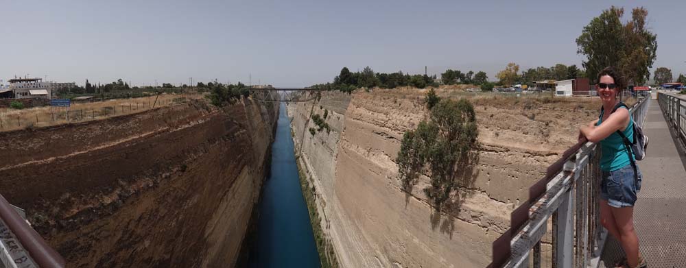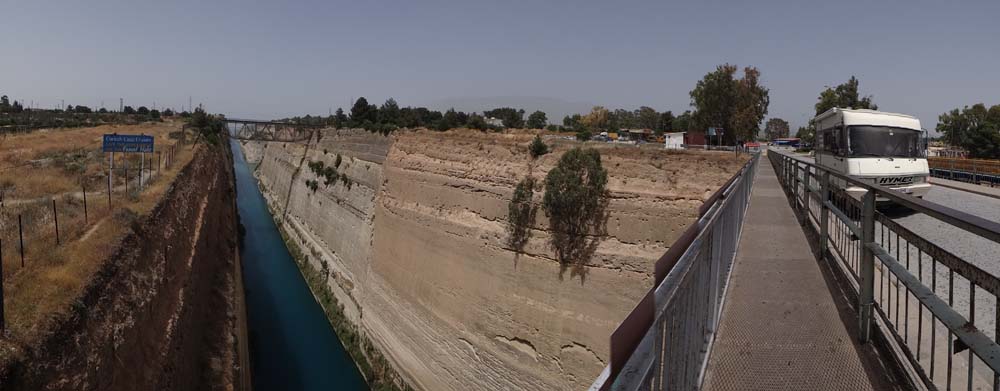 The Corinth Canal. A monument at one end honours the Hungarian engineers who built it, and who financially crippled themselves in the process.