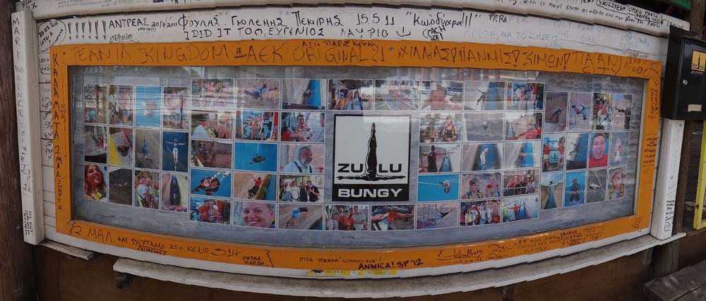After Lidl we just kept going, all the way up to the Corinth Canal. We’d read some folks just drive over it while trying to find it, not spotting it below them. Ju’s eagle eye avoided this fate for us, spying a 3.5 tonne limit sign she figured that must be the submersible bridge? True enough, we rounded the corner and pulled over alongside a queue of traffic waiting for the bridge to, erm, arise from the depths. Ju legged it over to see it as I did a Dave lock-down (much pulling closed of curtains, turning fridge onto gas, hanging a towel from the rear cupboards as the blind’s broken). By the time I arrived it was up, the thick wooden boards running across it dripping wet and cars ploughing across. For some reason a weight limit sign now read ‘3 tonnes’, a bit of miscommunication maybe? We walked over, spying the control booth and a chap stood idly by his moped in the doorway. With a bit of sign language he told us the next lowering was in 40 minutes, as the boat had to travel the length of the canal before another could come the other way. I looked past him at the controls, they looked like a long-abandoned, yellowing and dusty ‘Tardis’ film set.