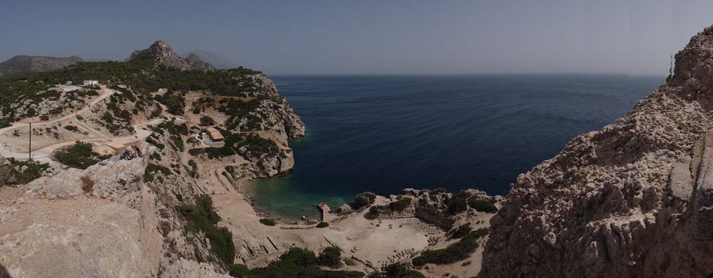 From the canal we drove here, all in, maybe 3 hours of driving. Since about 8 minutes of that was on flat straight road, my back was killing me as we finally found a spot high up on the cliff above us here. The car park sits above some pretty well preserved ancient ruins, an idyllic taverna and little cove at Cape Melagavi. Sadly the remains of a couple of car windows adorned the ground, and the neds had been at the almost-finished little building to one side, plastering it with political graffiti. Ju had a bad feeling. While I have to admit the phrase ‘wild camping’ is a bit over the top, since we’re not exactly Bear Grylls out here, it’s not entirely as safe as it could be either and we have to go on gut feeling when choosing places to stay. My gut feeling was this place was awesome and I lobbed my dummy.