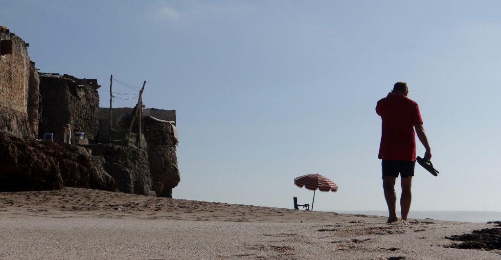 The name of the manager here remains something of a mystery. We asked him, and it sounded like ‘Lesson’, so that’s what I’ll have to go with, as he was more pre-occupied with attempting to fleece us of alcohol than with pleasantries. Phil took the brunt of it, fending off Lesson’s request for whiskey with a query: “doesn’t your god mean you can’t drink?”. Lesson wasn’t letting a mere mention of religion put him off-track “I have no god, I am a free man, what about wine, what wine have you got?”. To which Phil delivered apparently the winning blow. “We have no wine, we are athletes, we ran the Marrakesh half marathon and we have the T shirt to prove it”. “Ah”, says Lesson, sensing he’s going to have to get his booze elsewhere after also failing to get at any of our Spanish boxes, “what about this T shirt, you give it to me?”. Jesus, they’re as relentless as the ocean sometimes, this was all after a couple of attempts to sell us guided tours of the nature park.