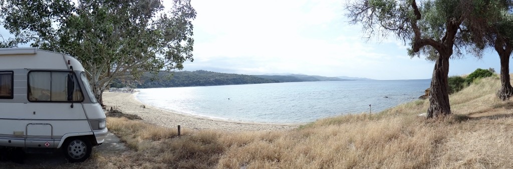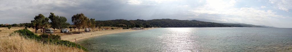 Dave the motorhome is keeping quite still on his hard-standing at Agios Ioannis beach near Nikitas (N40.19160 E23.68982). Around him the skies are cloudy and the wind is picking up, there are storms forecast for the next few days, so we’ve decided to stay put and do a bit of planning for our route across Bulgaria and Romania. I only realised today that we can’t cross straight from Romania to Poland, so need to check the insurance to see if we’re covered in Ukraine, if not it’s back into Hungary then Slovakia before Poland. One thing is for sure, my geography is improving.
