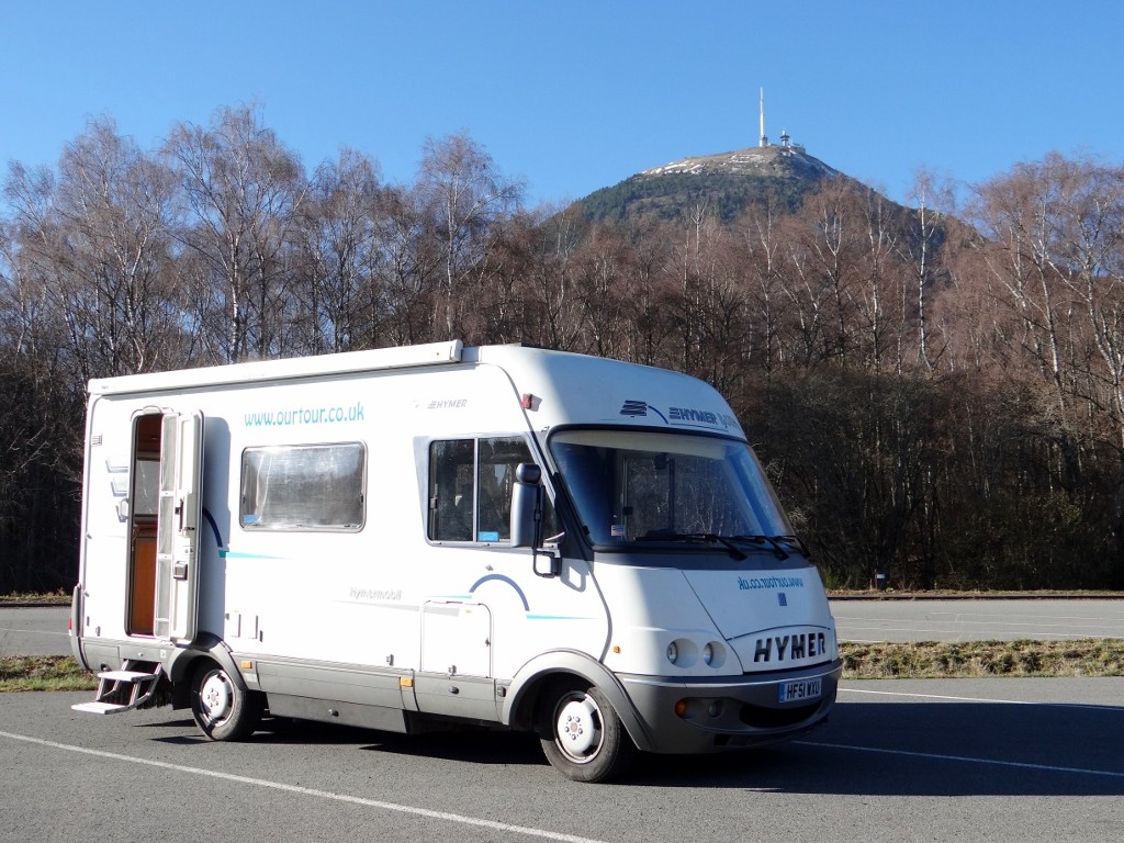 Zagan the motorhome is spending the night on his first volcano, his predecessor Dave slept on Vesuvius and Etna – so he’s got a little way to go to catch him up. He’s parked up in the car park of the Puy de Dôme (N45.76934, E2.98439) part of the Chaine des Puy, the youngest string of volcanoes in France.