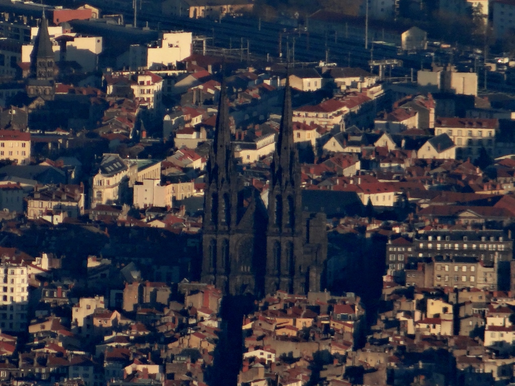 We cruised up the motorway for three hours in thick fog, not expecting to be able to see the volcano when we got here, but as we entered Clermont-Ferrand the skies cleared and our target came into view.
