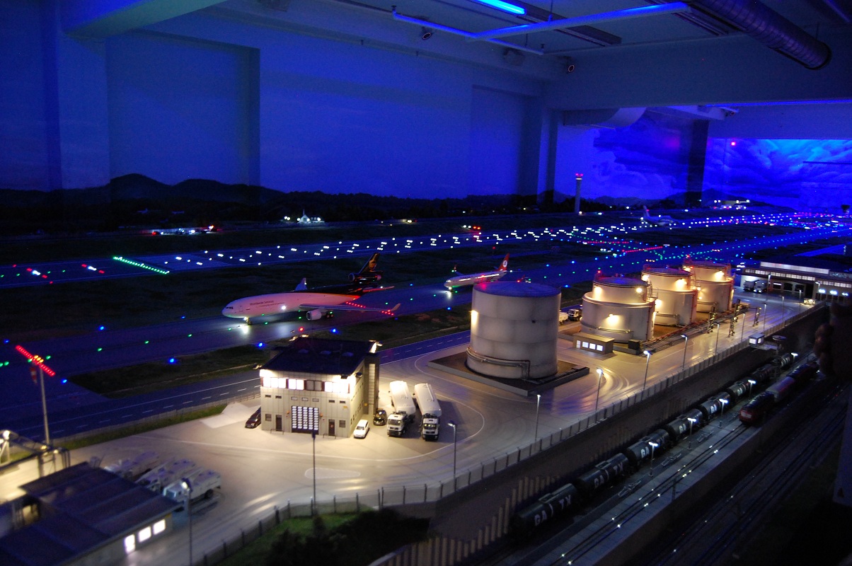 - Knuffingen airport at night. Took 6 years to build, cost €3.5m 40 planes take off and land, and 90 vehicles drive about the place.