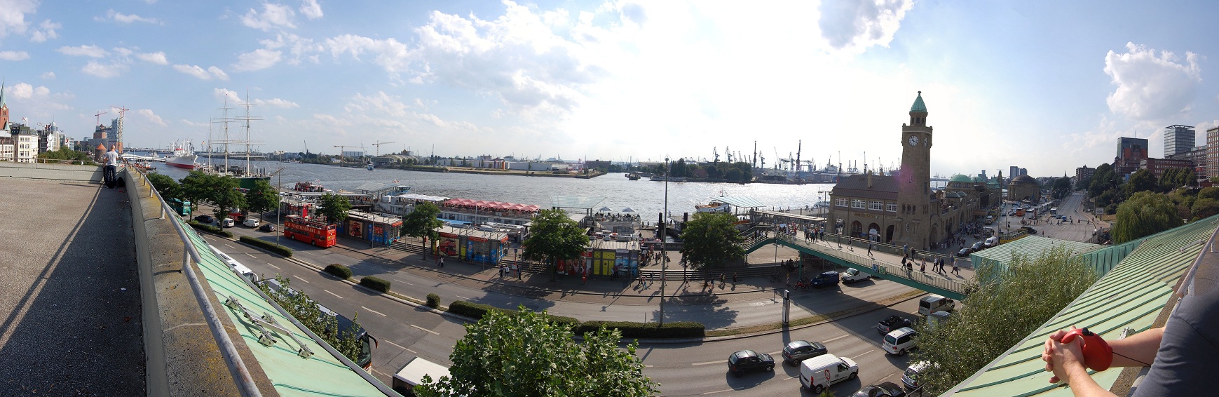 We’re still parked in the same place as yesterday, for once tempted to stay a couple of nights in the same place (N53.54284, E10.02709). The location is excellent, really close to an S-bahn station which takes you into the centre of town in a few minutes. Less than €10 buys a day ticket for up to 5 people, the dog travels for free (as far as we know) and it also includes some of the boats which cross the Norderelbe.