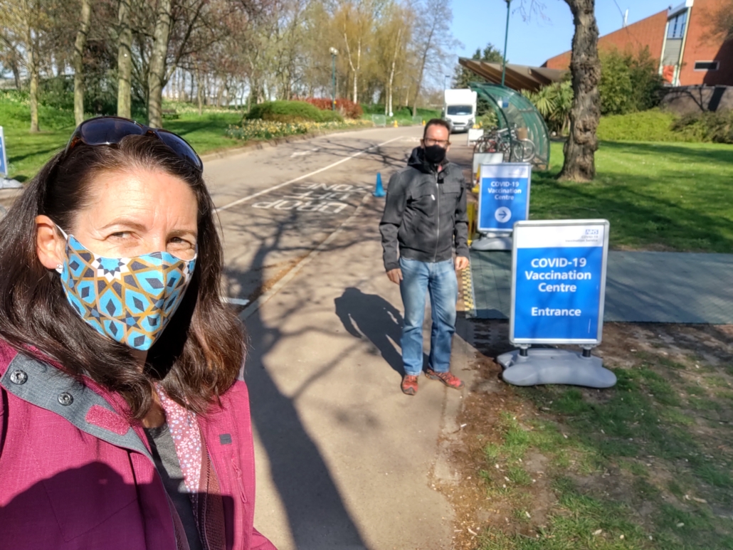 Back in Nottingham we had to quarantine at home, our third time in quarantine, so we’d got the hang of it. A Sainsbury delivery arrived a couple of hours after we got home, and we also bought a ‘normal sized’ TV, which our friends kindly dropped off. We knew we’d be watching it quite a bit of TV, and I could no longer read the sub-titles on the TV from our motorhome without my glasses. Our ‘Day 2 and Day 8’ PCR tests were waiting for us when we arrived, although I’m still waiting for my Day 2 test results as it went missing. We also each received daily phone calls from the test and trace team to ensure we quarantined for the full 10 days, although in the end we quarantined for 11 days as we had to wait for our Day 8 results to come back before we could safely be released. We emerged just as covid restrictions were eased on April 12th allowing pubs, restaurants, hairdressers, gyms and non-essential shops to reopen. Once we were free there was no stopping us, we bought ourselves a Mini and drove to the vaccination centre, relieved and grateful to get our first jab of Astra-Zeneca vaccine.