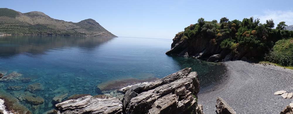 I don’t think we’ve seen three British motorhomes together since we were at Lake Bled about a year ago, certainly we haven’t seen that many parked together outside the confines of a campsite, but that what was on the quayside at Kotronas last night and it was wonderful to chat. Parked up with Mike and Jacqui we were joined by veteran travellers Marion and John, it turned out we all live with an hour drive of each other in the UK. Marion and John had managed to get a UK insurer to cover them for Albania (wow!), after a long old search, so had travelled south from the tip of Croatia through Montenegro. Marion pointed at the rocks piled up to protect the mole: ‘Albanian roads are like driving on these’. Apart from the poor surfaces they’d loved the place, finding folks there hugely gregarious and accommodating.