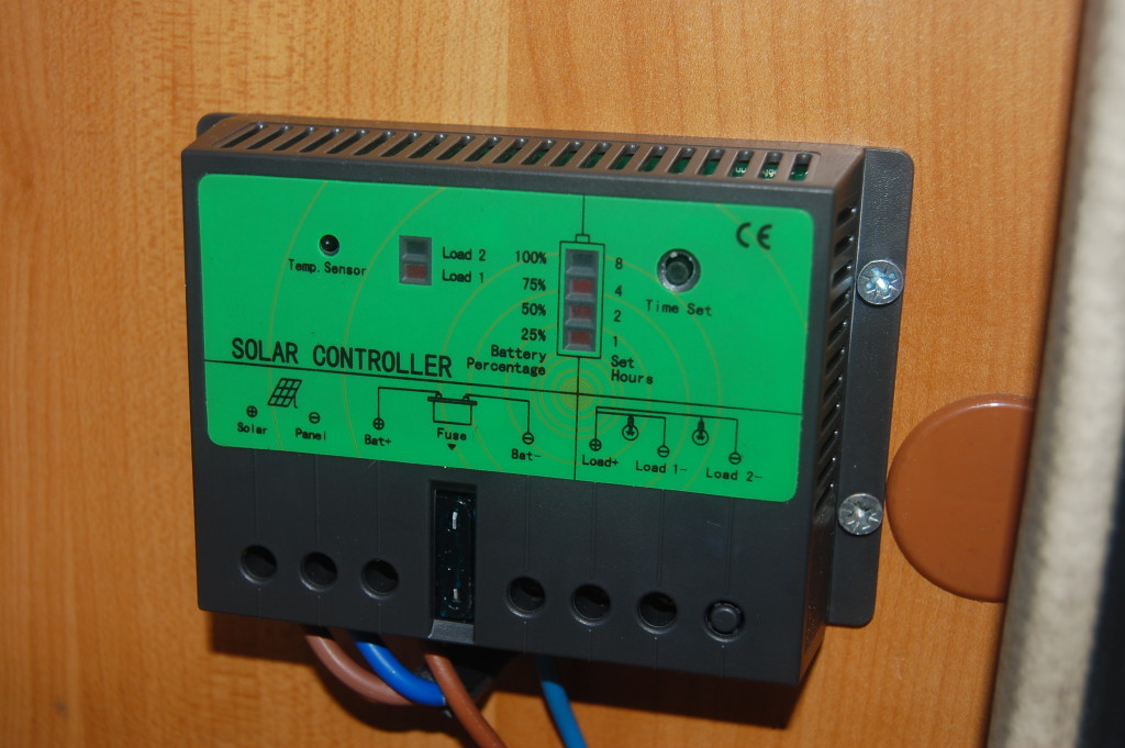 One of the plus sides of an older vehicle is the fact I’m far more comfortable with the motorhome preparations, making alterations to it, than I would be something shiny and new. I felt the same way about the VFR400 motorbike which I converted into a track/race bike. Today’s been a good example of altering it, drilling through it, screwing and gluing things to it. I’ve fitted the Solar PV panel and charge controller, installed some shelves in the wardrobe and replace the handle lock with a spanking new one. It’s been a good day; took all the usual niggles in my stride and although the jobs took me 5 times longer than a pro, I’m happy with them all.