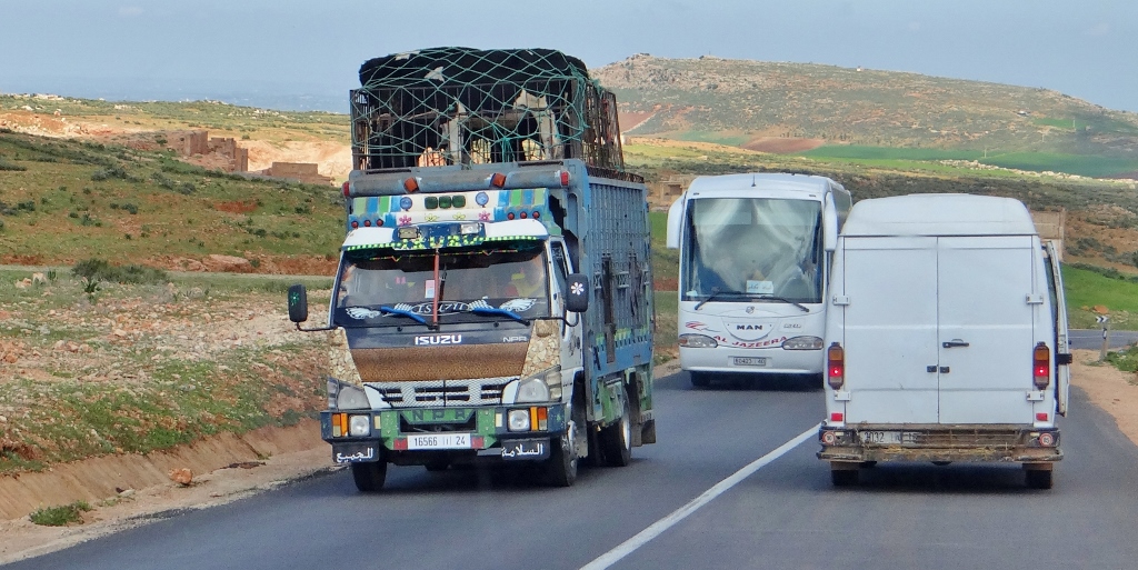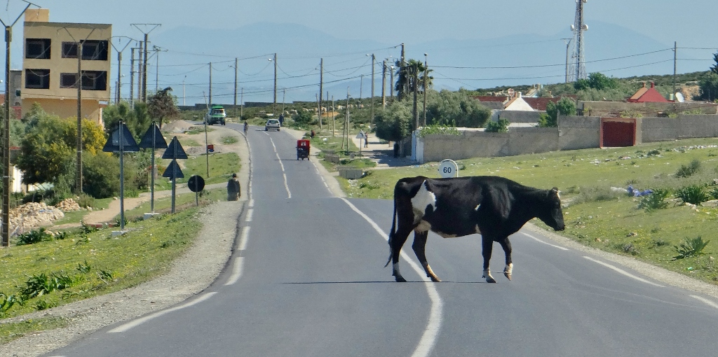 Today we avoided hitting cows with their front legs tied together, two donkeys on the run, numerous sheep and goats and cars, busses and lorries who wanted to share our side of the road – we call driving in Morocco 1000 eye driving, because that is what you need