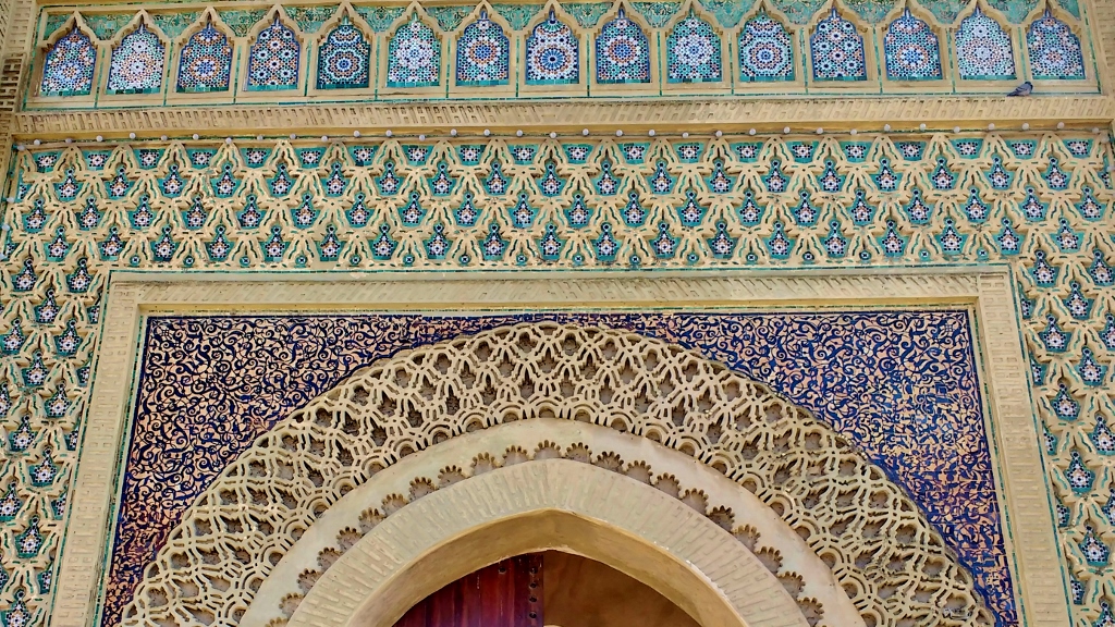 After a quick stop and shop in Marjane to stock up on spices, harissa paste and other bits that we only get at the supermarkets, we headed into the city. As far as we know the campsite is still closed, so we aimed for one of the guarded parking areas in the middle of the town. We found ourselves unable to reach the one that looked the nicest in our database (it was tarmacked) because our approach route needed us to squeeze through a small arch in the city walls. Jurg’s adventure truck would destroy the arches too, so we circled around the city and stopped at the gravel-mud parking just outside the walls and opposite the bus station (N33.889871,W5.565713). The guardian greeted us with a friendly smile and showed us into two spaces among the other vans and after collecting 50Dh for the night, pointed out where the toilet emptying was and left us to enjoy the city.