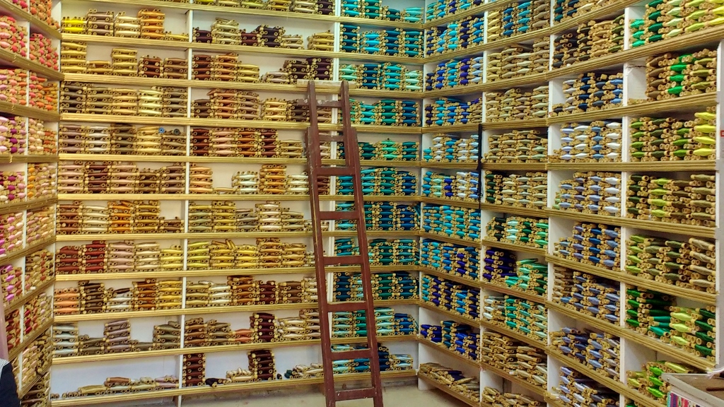 Entering the material section I was inspired by the richly-patterned material, and we were invited to sit and discuss which fabrics we wanted to reupholster our home. After a bit of confusion and some attempted discussion they realised we only wanted a metre, well we thought they did. Turns out they thought we wanted to cover something a metre long, so they cut us off 1.5 metres so we could cover the edges too. My plan is to recover the scatter cushions in Zagan as a souvenir of our trip here, and who knows what else with the extra bit.