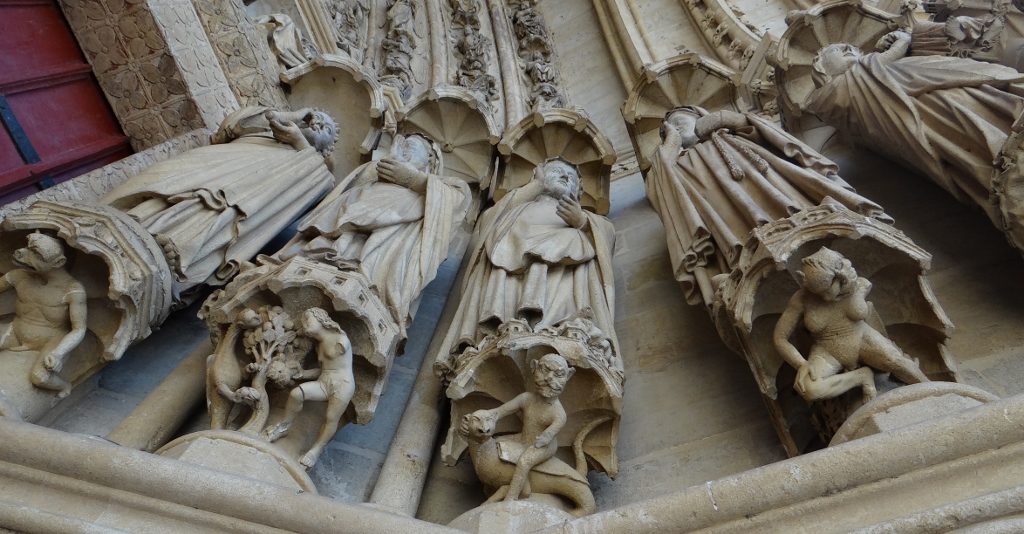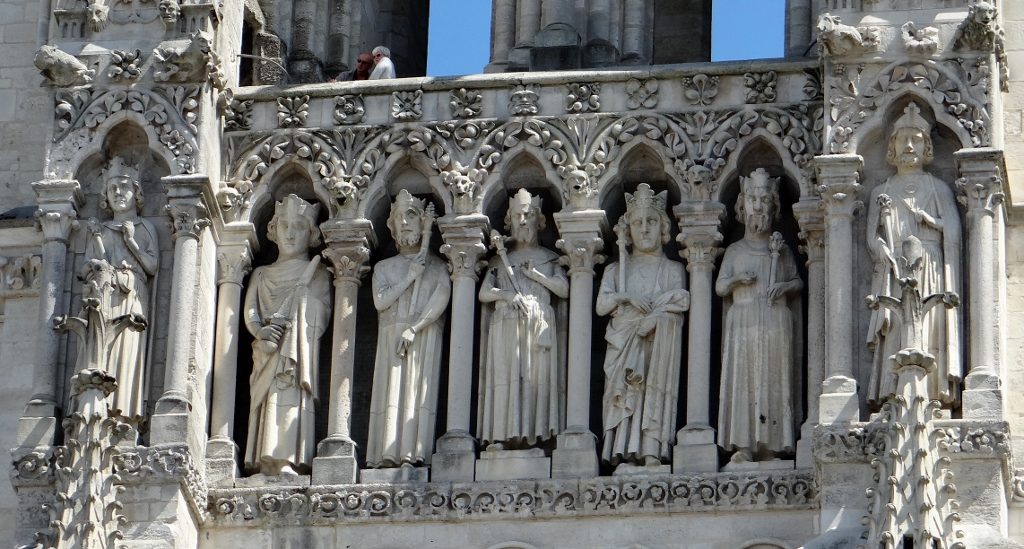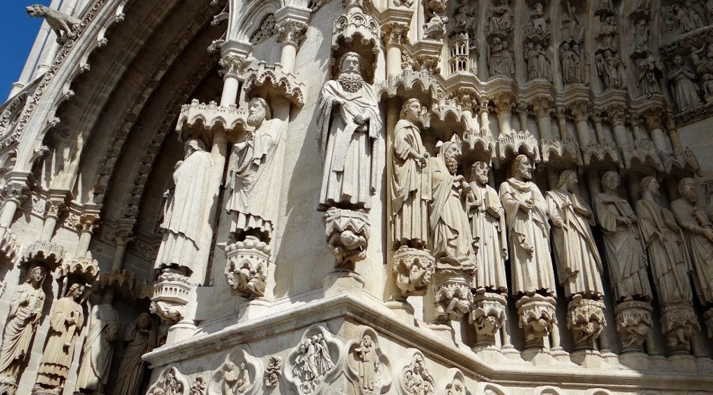 After parking up here, a short grassy walk past families mucking about on or by the various lakes and canals, followed by a mixed-quality meal of snails, mussels and steak, and BOOM, we got ourselves a full-on face slap of carvings. The front of the Amiens cathedral’s dripping, nay, fireman’s hose-soaked in oversized kings, gargoyles, angels, small people looking aggrieved to be stood upon, po-faced saints and a thousand other characters. Stood in front of the cathedral, having had to back up as far as space allowed to fit it into a camera lens, I was rushed back to Italy, and to the just bonkers facades the Roman Catholic religion inspired craftsmen to, erm, craft over there too.