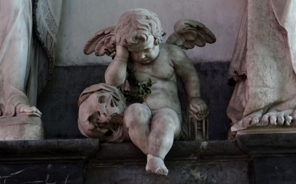 The Crying Angel in Amiens cathedral became something of a symbol of WW1, with one arm resting on a skull and another on a time piece