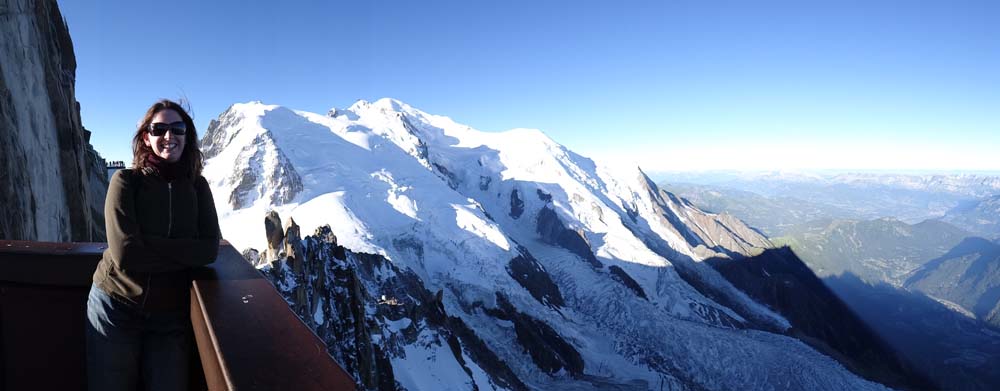 It was cold, we took it in turns to use the camera as our hands froze, filling our SD card by the time we got back. The friendly, perfect-English Bulgarian fella we met in Annecy tapped us on the shoulder and we recognised his beaming smile immediately. He took a raft of photos of us, telling us his kids were alpine ski racers and they’re often in the Alps, destroying my prejudice that Bulgarians couldn’t afford to be anywhere but Bulgaria. We shook hands again and tore ourselves away from our new-found friend and the station pinned to an impossible needle of grey. The speaker system encouraged us to depart, perhaps lost in translation, perhaps hoping to clear space for the hordes on the way up. I could have stayed all day, just staring out at the unreal eye candy. But Charlie was waiting below, and we’d no idea how hot it might get down in the valley below.