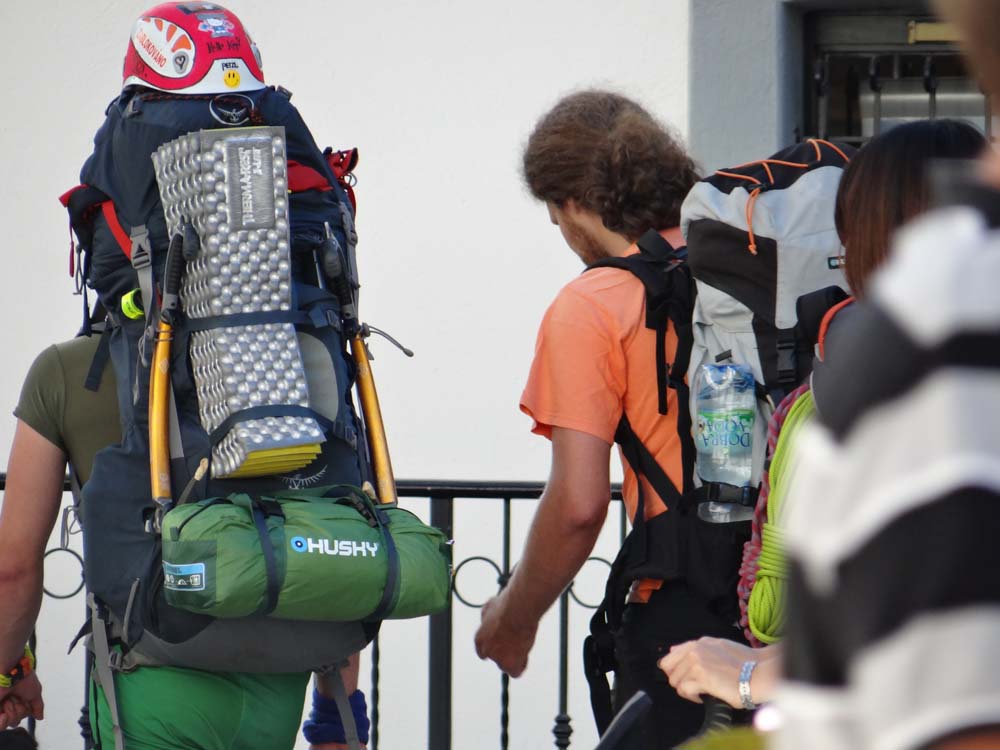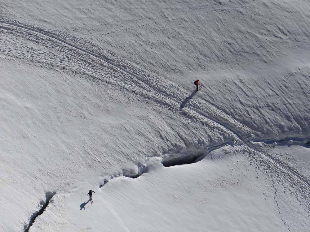 Chamonix has something of a reputation as a die-hard nutter’s haven, even being dubbed ‘the death sports capital of the world’. Folks come here to do all kinds of extreme sports, and a few inevitably don’t leave. Either the 2nd or 3rd cabin of the day arrived to pick us up, swinging back and forth as we all loaded into it. We looked about and smiled, half the people in there had an ice axe, ropes coiled over their shoulders, head to toe climbers in purple and green clothes. It felt like a bit of a cheat to me, taking the cable car up to Aiguille du Midi, the climbers were short-cutting to 3842m above sea level, leaving just a vertical kilometer to climb to reach the Mont Blanc summit at 4810m. Actually, the height varies with time, as the mass of rock’s capped with snow and ice which recede and thicken each year, but who’s measuring?