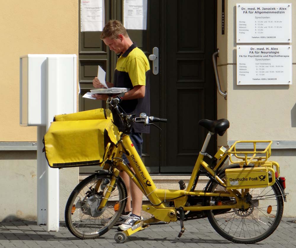 German posties get electric bikes and all the post boxes together in one place – nice job if you can get it.