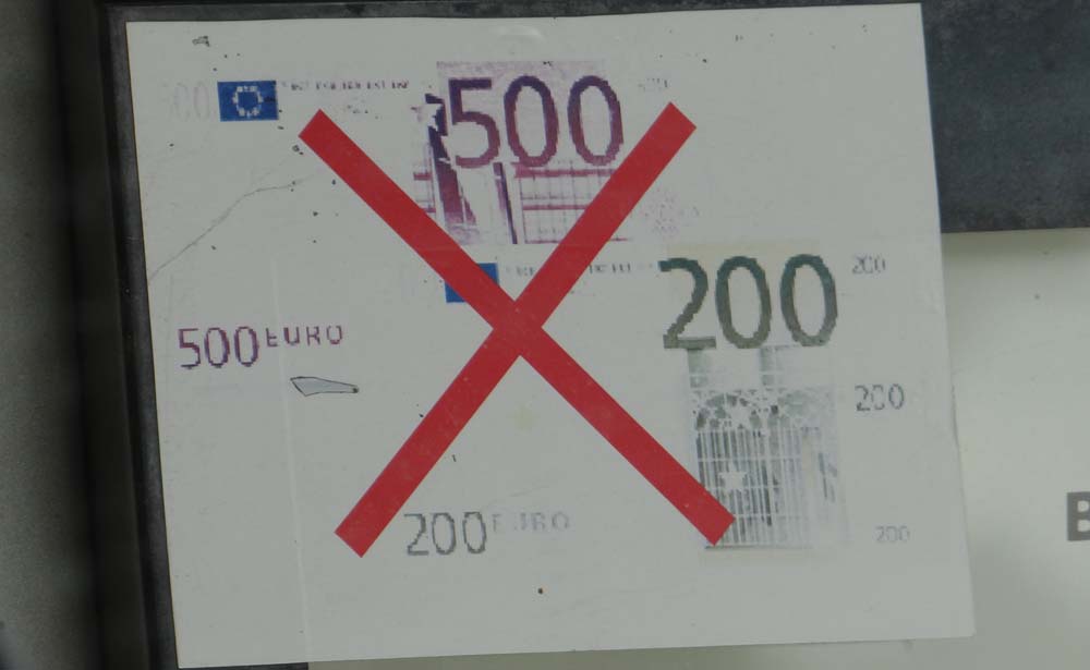 They wouldn’t accept 500 or 200 Euro notes at the petrol station today, good job we’ve spent all of ours – ahem!!