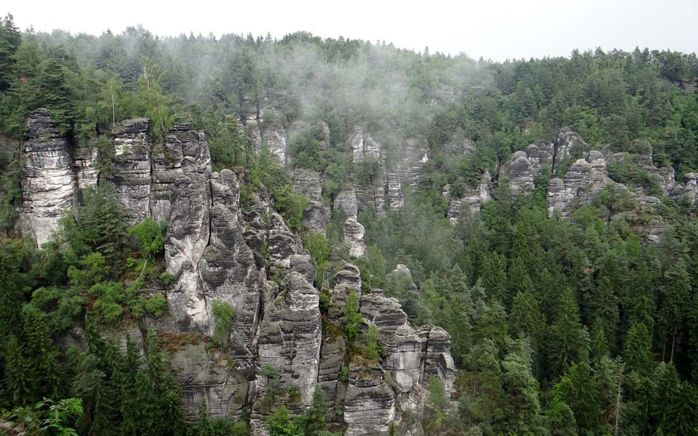 This morning the rain had eased, but one of Dave’s floor mats was soaking. I hadn’t been hearing things, there was a drip from the rear skylight last night, another job for the ‘to do’ list when we get home. We decided today to take a detour from our original plan (that’s what I love about this lifestyle, plans change easily) and pop over to the only National Park in Saxony; Sächsische Schweiz – Saxon Switzerland.