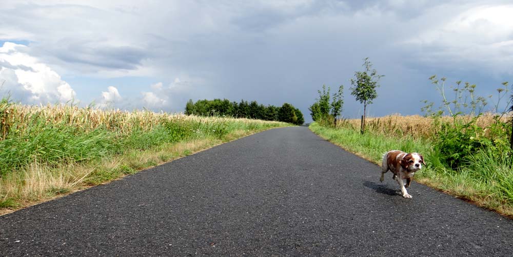 We took shelter next to an information board to wait it out, before continuing our walk back on a paved path through corn fields. If you’re ever visiting this area, there is free parking here – just head to Rathewalde and follow the signs for parking to the right once you are in the main village, a couple of hundred metres outside of it the pay machines stop.