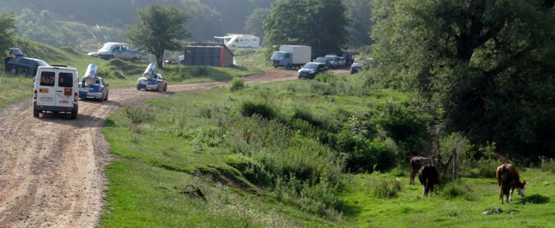 This morning we peeked out to see many more cars and trucks up by the finishing arena, it was all starting to take shape. On top of the massively steep mud slope was a Red Bull arch – the finishing post – clearly visible from Dave. Cars and off-road bikes continued to pour past, some of the bikes opting to use the fields instead of the road. We joked that the ubiquitous Red Bull mini cars with oversized cans on the back would never make it up the gravel road, then ten minutes later two drove past us. Figuring it was all about to kick off, we slapped on some sun screen, packed some snacks in our rucksack, dug out the camping chairs and set off to find our viewing spot.