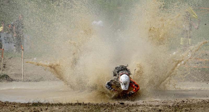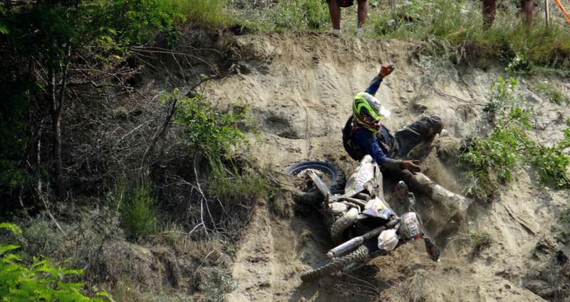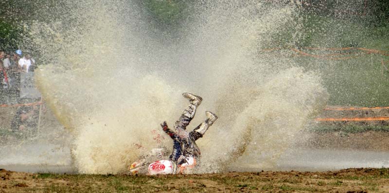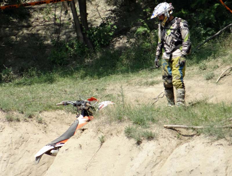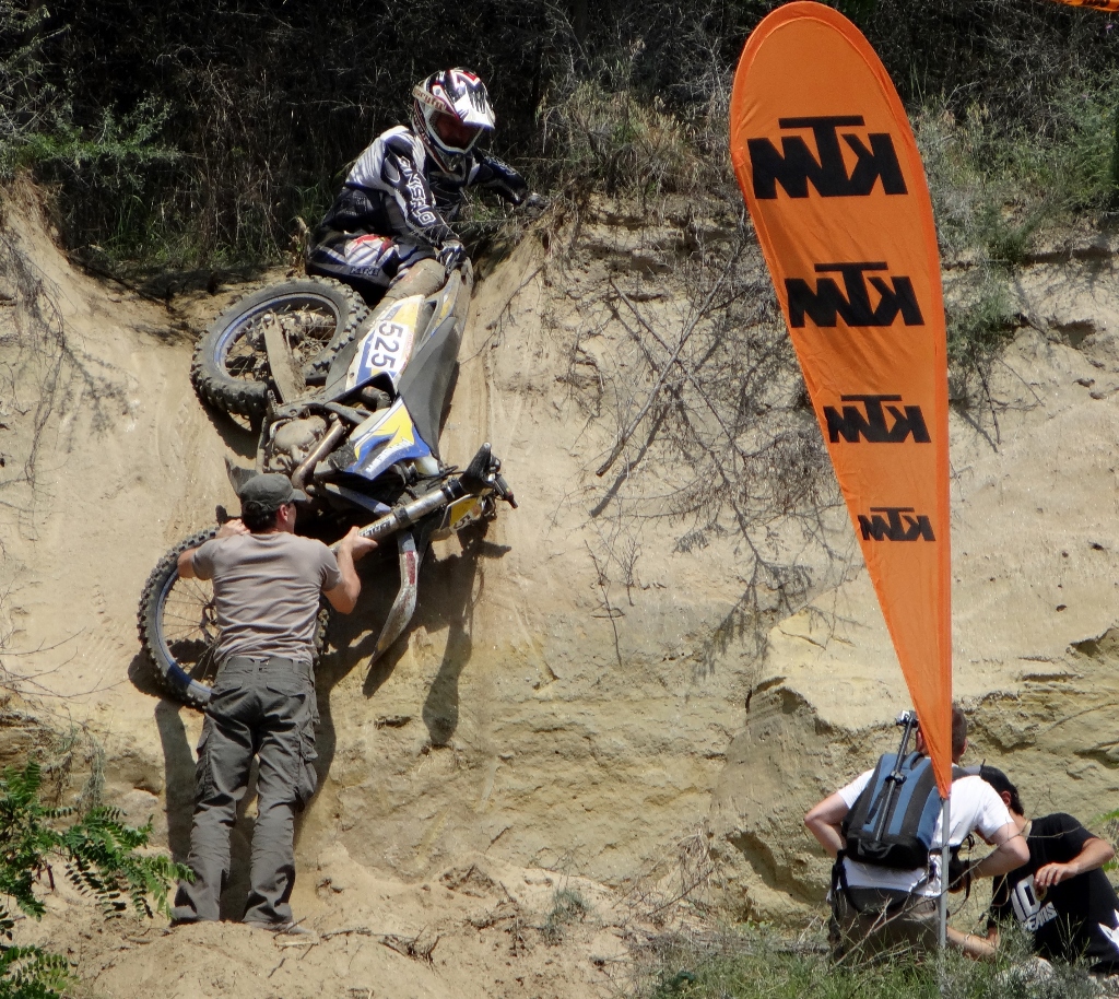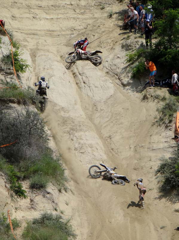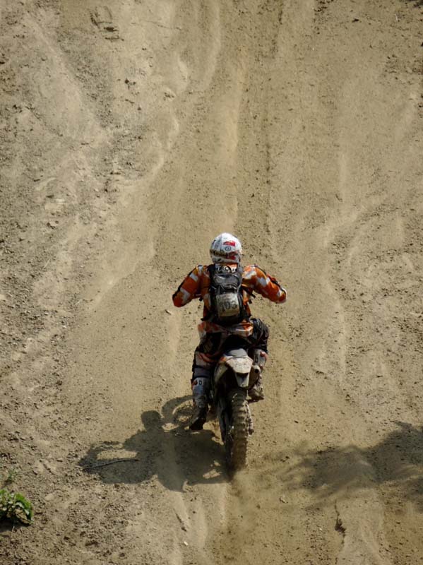 Of course this was hard core stuff, we’d been foolish to think they would use the motorcross track, that was far too tame. These guys only seemed to tackle vertical slopes, many many of them. Sometimes the bikes made it up and the riders didn’t, other times the rider scrabbled over the last bit of dirt while the bike fell away. Then they had to try and reunite themselves with their machines – as there seemed to be only a few spectators among the trees on the steep banks to help them.