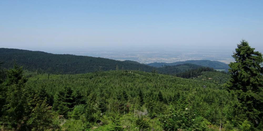 Satnav guided us through the numerous confusing signs that were everywhere in Baden-Baden and also forgave us when we didn’t take the slip road inside the two mile long tunnel under the town – we were convinced she thought we were already out of the tunnel and was telling us to turn up ahead, oops. Soon we were on the Schwarzwald-Hochstraße (Black Forest High Street) which wound its way through mile after mile of trees with tiny glimpses of views across the Rhine and over into France.