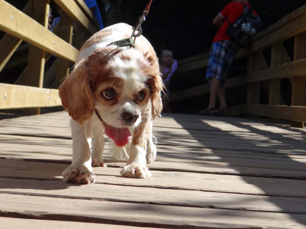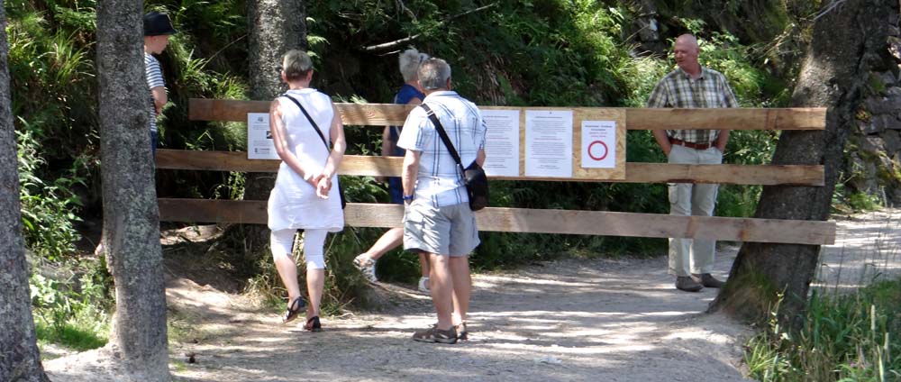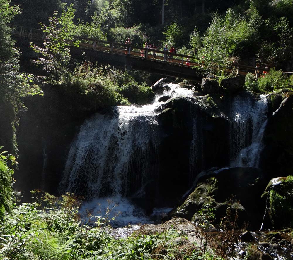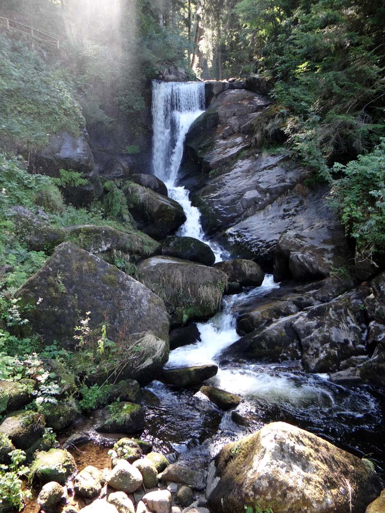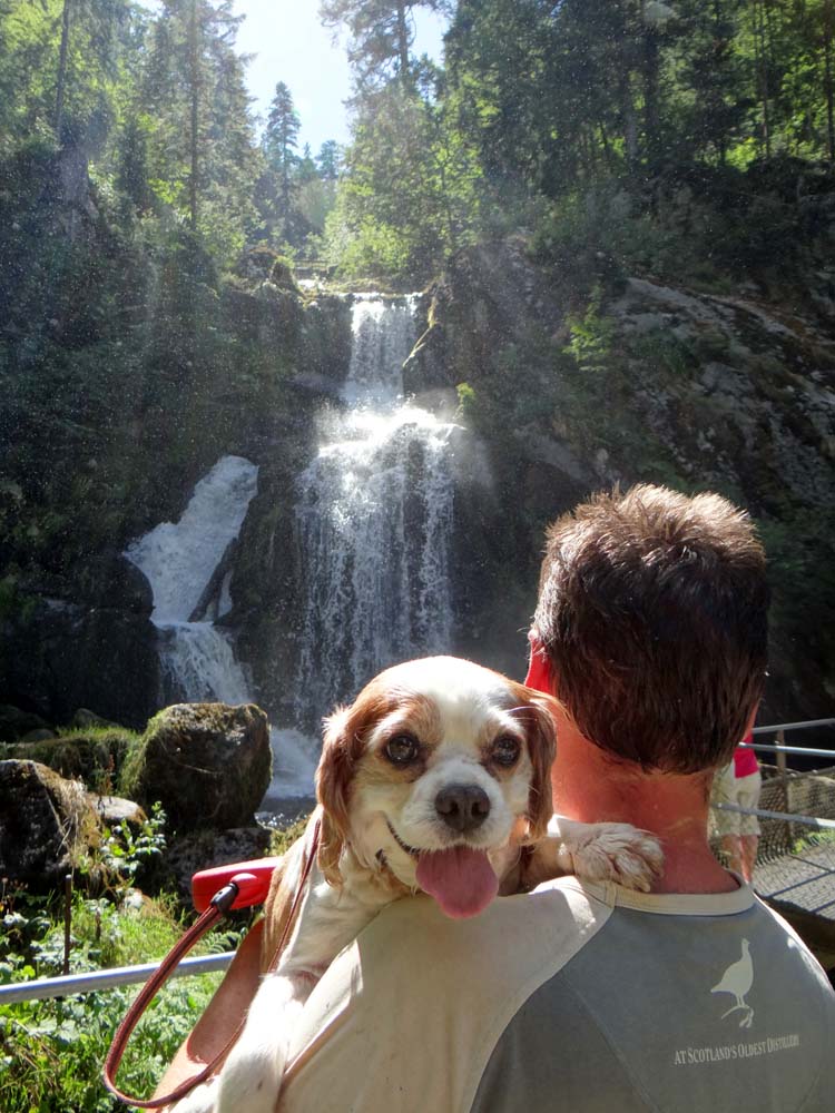 Surprised that we had to pay €3.50 each to go and see the waterfall, I asked if they had a copy of their leaflet in English, and that told us that we were about to see the tallest waterfall in Germany – so of course it would be worth the entrance fee. We strolled about under the shade of the tall pine and spruce trees with our eyes peeled for squirrels who were supposed to be in abundance and so unafraid that they’ll happily eat the nuts you could buy at the entrance gate right from your hand. We didn’t spot any, but we had Charlie with us, who was happily hoovering up any spare peanuts, so it was understandable! We did pass an American woman who was musing loudly to those around here that the bag she had just bought from the kiosk ‘smells like peanut butter, but there’s no butter, so it’s peanuts!’