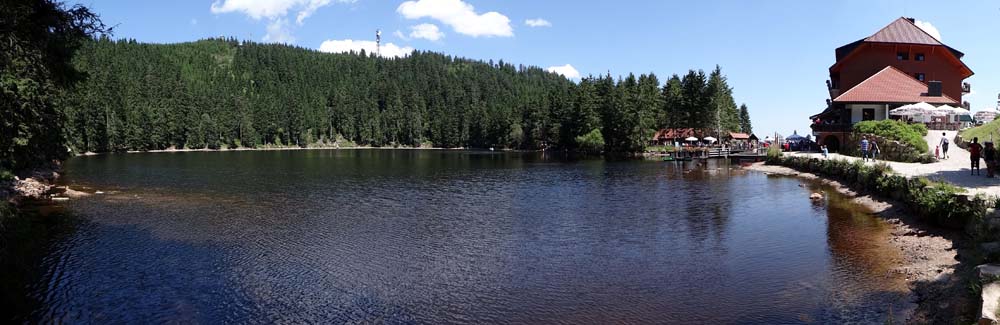 Spotting a load of cars we pulled in and went for a look around Mummelsee, the most famous lake on the route – unfortunately we weren’t very impressed. It was a nice enough lake, but not so spectacular to warrant the huge amount of people there. Still it gave us the opportunity to do something neither of us have ever done before; eat Black Forest Gateaux in the Black Forest!