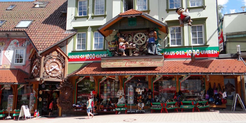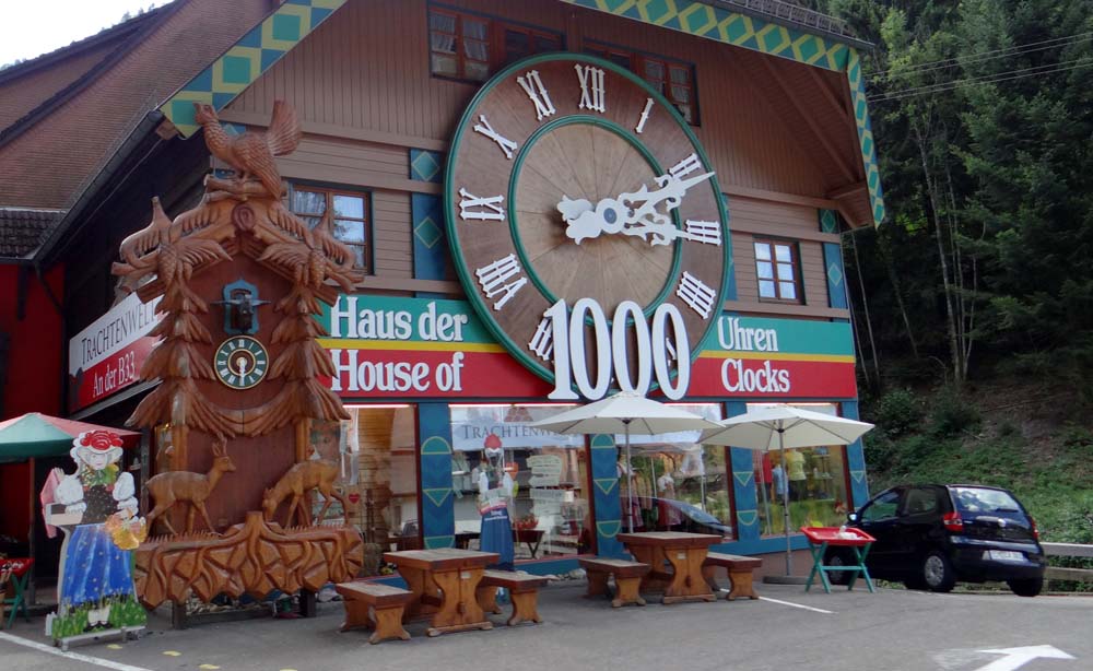 Back on the road again we asked satnav to take us to Triberg, our parking database talked of a motorhome car park near some waterfalls and as the temperature in Dave was around 37C we needed a cooling spray of waterfall mist. Arriving in Triberg it turned out to be a bit of a Disneyland version of a Black Forest town – almost every shop sold cuckoo clocks, lederhosen and Dirndl along with all manner of things carved from wood. We spotted a few motorhomes in a car park and pulled in to join them. Unable to understand the parking charges, we guessed it was €1.50 to stop in the day time and headed off towards the entrance to the waterfall.