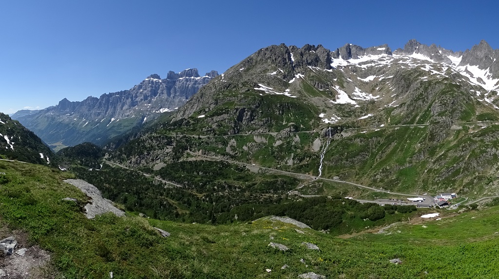 With the diesel on board we were nicely full (fresh water, food, diesel, LPG) and empty (grey and black water) and ready for a few days out in the wilderness. We were chasing altitude both for the coolness up here, and to help get our lungs ready for the big effort of running at altitude in Zermatt in less than a week. Once we’d turned east we started to roller coaster up and down through the lush green valleys before commencing the great zig-zagathon assault on the sky which is the Sustenpass. These big mountain roads always make me edgy, but they’re very well built and easily big enough for coaches twice the size we are. The hairpins are easy to navigate, there’s no snow at this time of year, the Swiss are patient drivers and Zagan’s engine easily pulls us upwards, albeit with the odd smoker’s cough of black stuff, reminding us of the dark nature of our fossil-fuel method of propulsion.