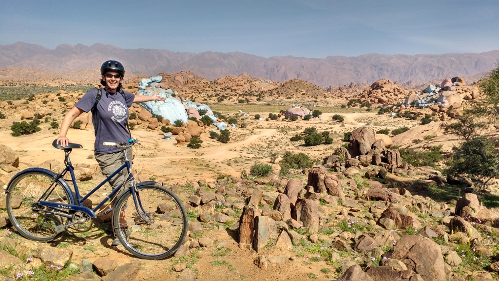 The true draw of Tafraoute though, for many and for me, is the surroundings. I’ve scrambled up a couple of the hillsides, sitting high up looking over the valley and making yet another futile attempt to absorb the magnificent. Out comes the camera for more hopelessly impossible efforts to capture the scene – I might as well reach out and try and grab it with a clenched hand. We cycled the 10km uphill to Tafraoute’s famous painted rocks, through more wonderful scenery, taking photos in the sure knowledge these moments in magic are fleeting things, instants we can only hope to absorb in ourselves. Apologies for the sickly rhetoric, but this is surely a beautiful place which my words can’t describe; it needs you to be here to appreciate it.
